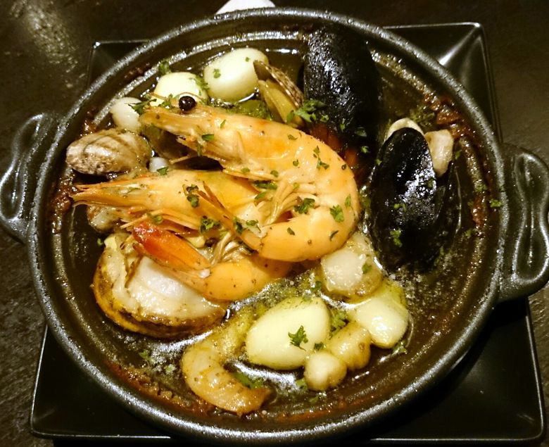 ゴロゴロにんにくと魚貝たっぷりのアヒージョ